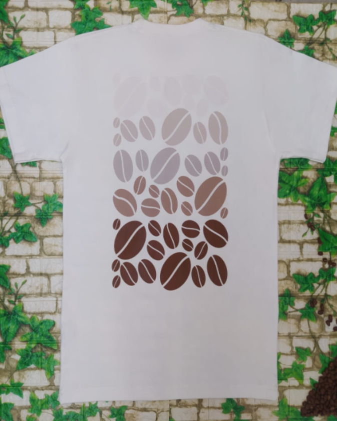 Polo de algodón corté clásico manga corta y cuello redondo. Estampado de café en costado del pecho y en la espalda.